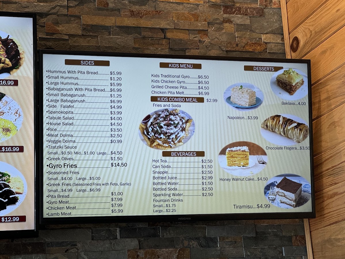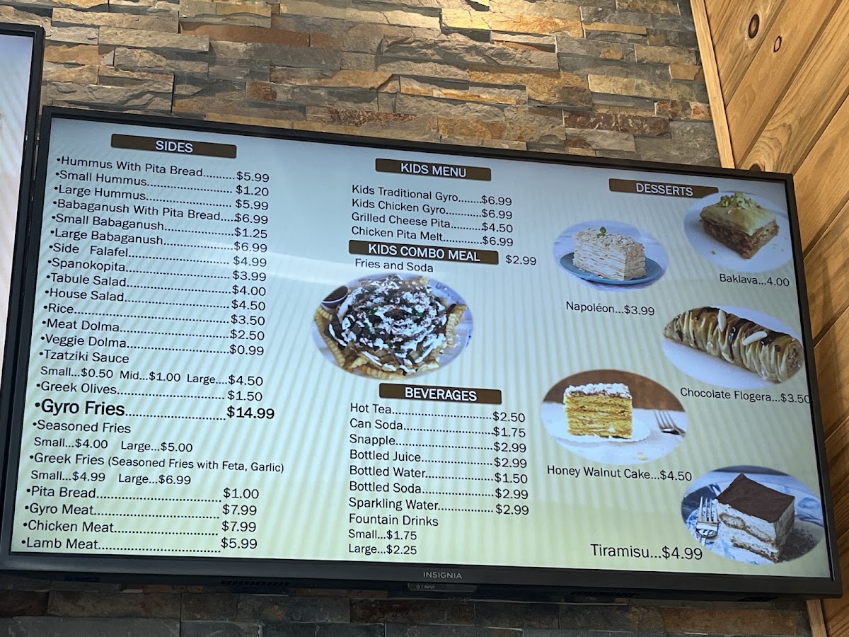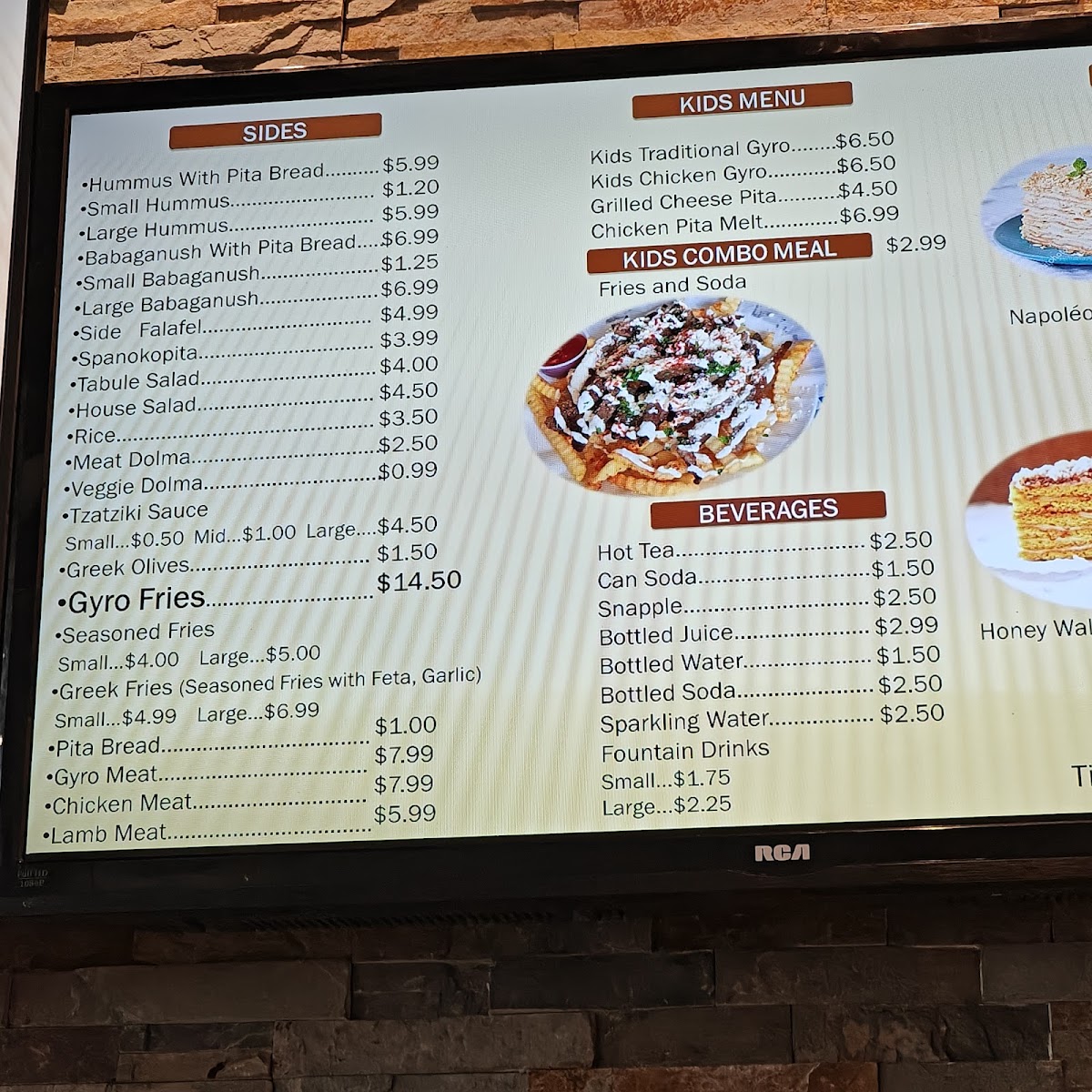 large Greek fries topped with gyro meat,garlic souse and feta cheese